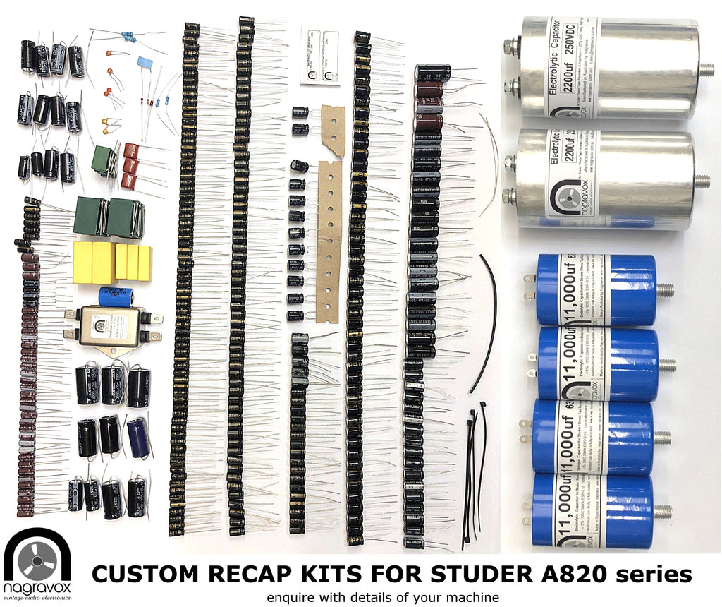 NAGRAVOX'S CUSTOM (made for your version and serial no.) electronic capacitor update / upgrade kit for Studer A820 professional recorder - includes components that should be replaced on all power supply, tape transport and audio systems .